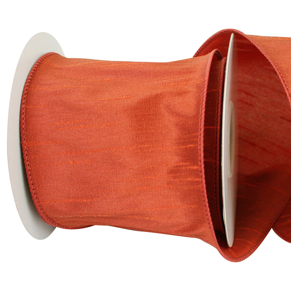 Elevate your seasonal and everyday designs with the luxurious texture of our Dupioni Supreme Wired Edge Ribbon in rust. Offered in 7/8", 2.5" and 4" widths and available in 10- yard rolls, this high-end ribbon features a subtly textured, silk-like finish and wired edges for effortless shaping. Perfect for holiday bows, wreaths, gift wrapping, floral designs, and upscale event decor. Each size and length sold separately.