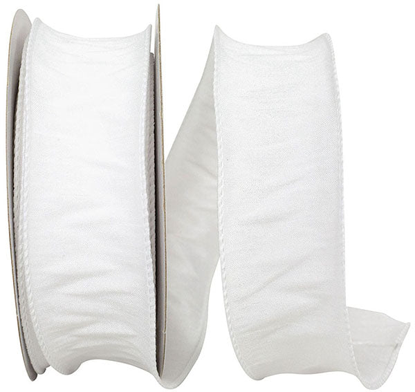 Elevate your seasonal and everyday designs with the luxurious texture of our Dupioni Supreme Wired Edge Ribbon in white. Offered in 7/8", 1.5", & 2.5" widths and available in 10 yard rolls, this high-end ribbon features a subtly textured, silk-like finish and wired edges for effortless shaping. Perfect for holiday bows, wreaths, gift wrapping, floral designs, and upscale event decor. Each size and length sold separately.