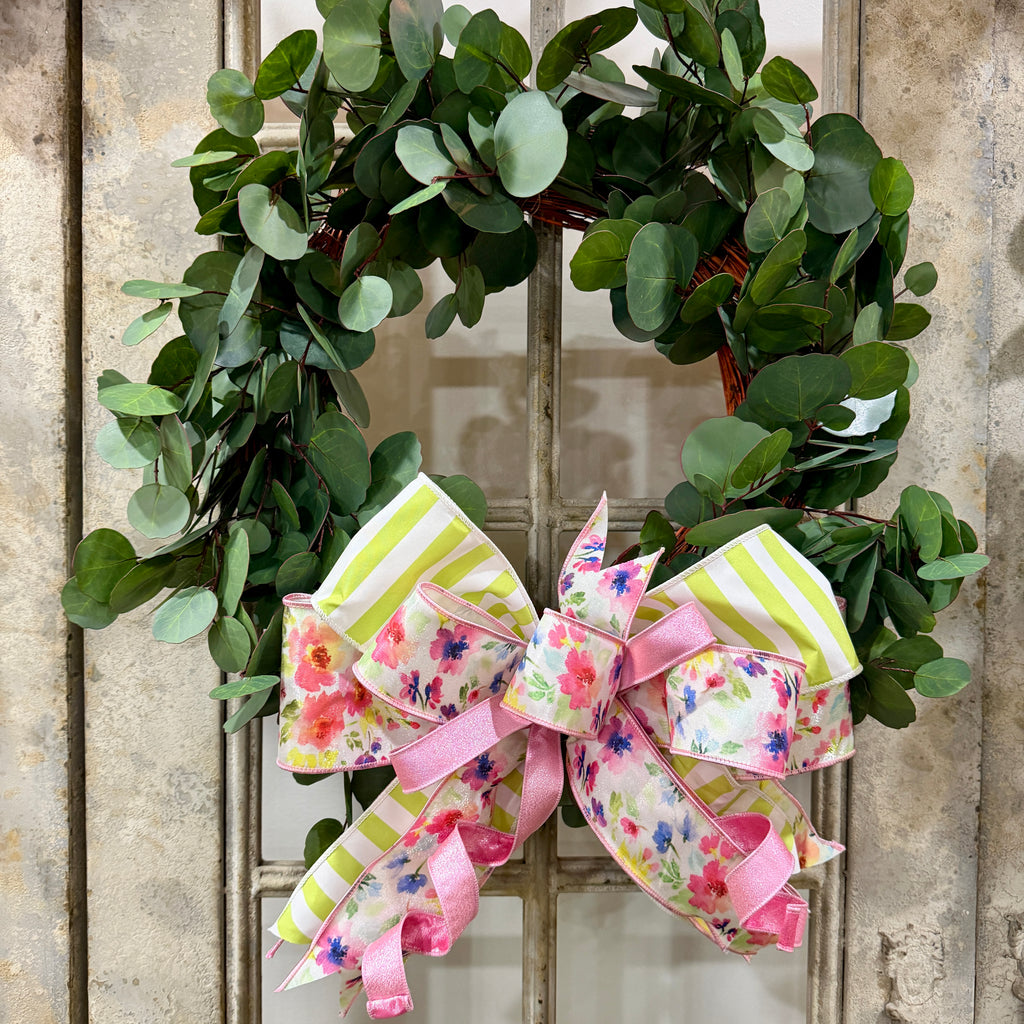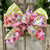 Add a touch of garden elegance to your home with this handcrafted, multi-ribbon masterpiece. Featuring a vibrant mix of watercolor florals, crisp lime stripes, and shimmering pink accents. This bow is designed to be the focal point of any wreath, garland, vase etc.