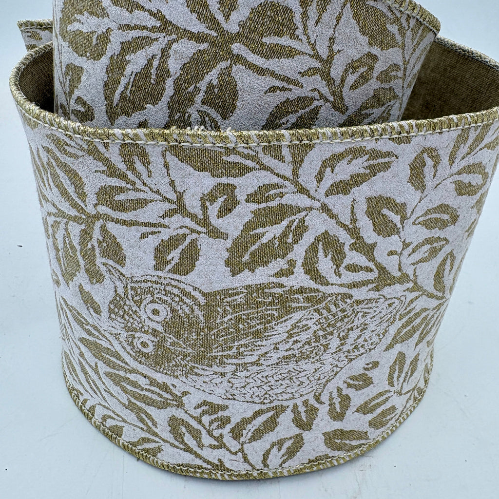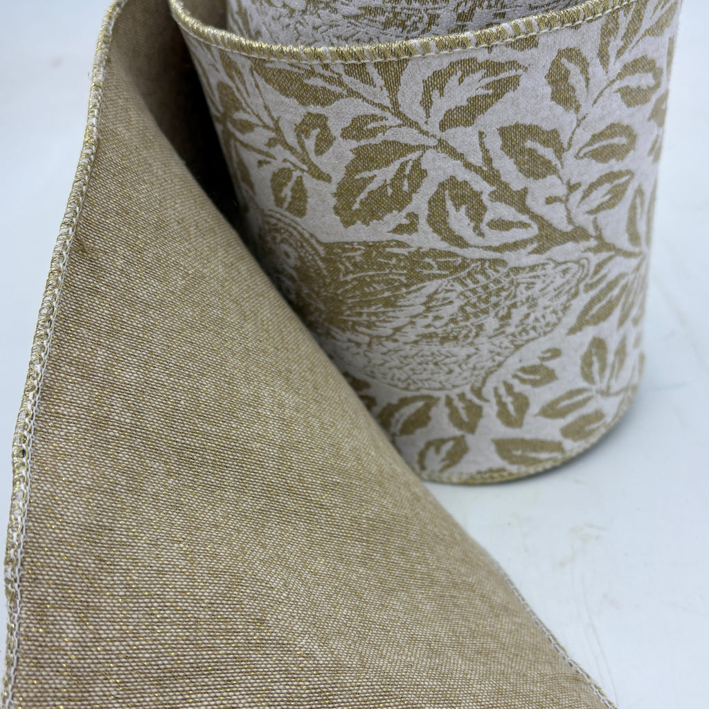 This 6" Dupion Metallic Wired Ribbon features a rich, textured finish with subtle metallic backing that catches the light beautifully. The warm, neutral tone makes it endlessly versatile — perfect for year-round styling, seasonal transitions, and layering into your favorite wreaths and garlands.