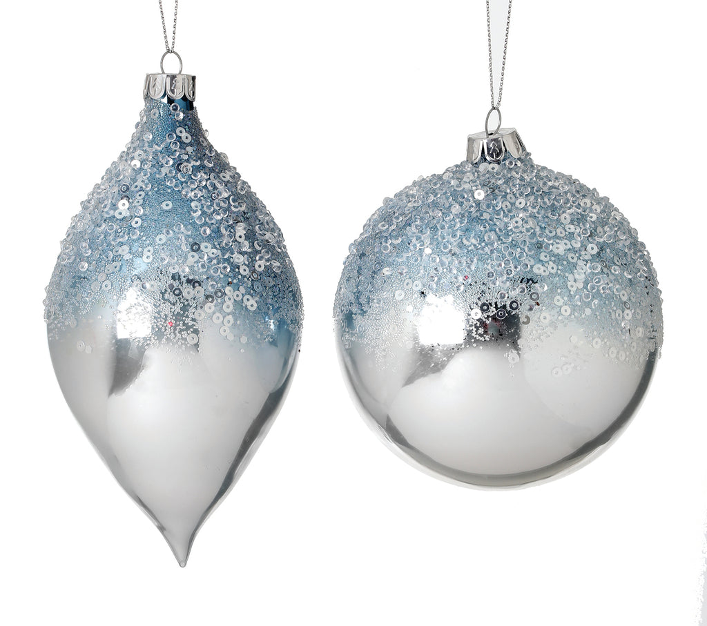 4"/6"Metallic Ice/Sequin Ornaments | Two Elegant Styles