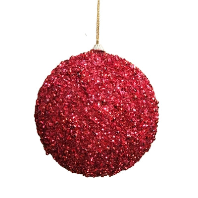 Turn up the sparkle with this 4-inch Dazzling Sequin/Bead Ball Ornament in vibrant holiday red. Encrusted with shimmering sequins and faceted beads, this ornament catches the light from every angle, adding glamorous texture and festive brilliance to your tree or garland.