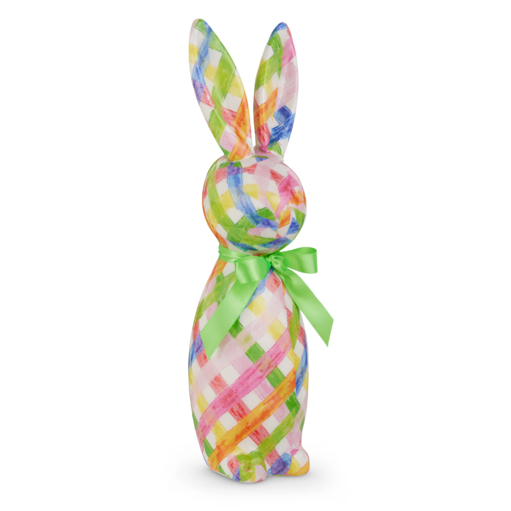 Add a cheerful pop of color to spring styling with the 16" Sweet Weave Bunny. Featuring a bright, watercolor-style woven pattern and a fresh green bow, this playful bunny instantly lifts mantels, entry tables, bookshelves, and Easter vignettes. The tall silhouette makes it an easy statement piece—perfect for mixing with pastel florals, eggs, and greenery for a look that feels happy, layered, and designer-styled.