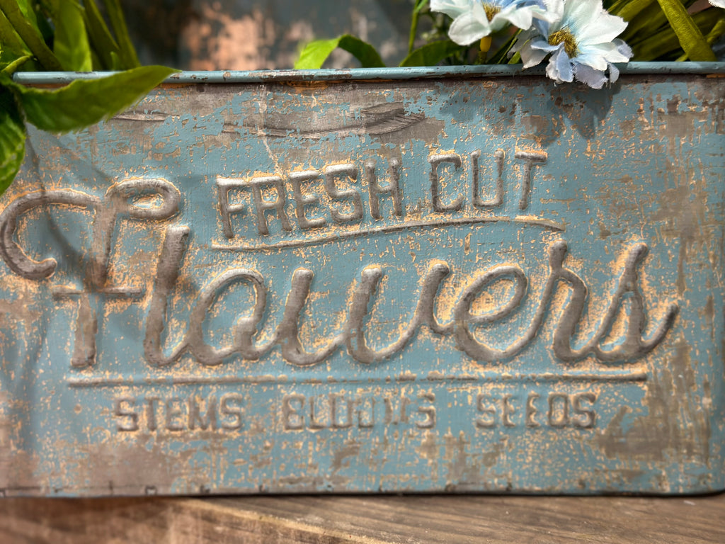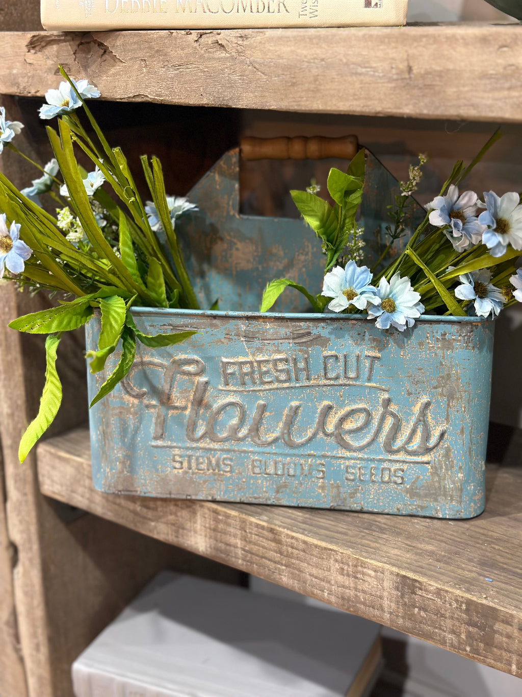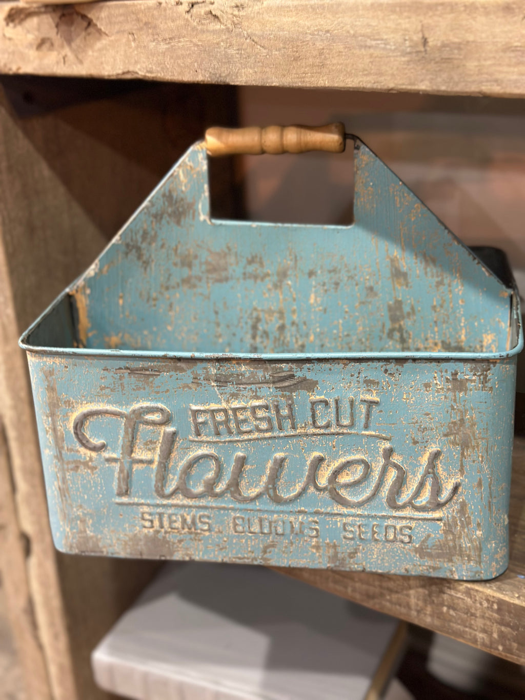 Handcrafted with intricate detailing, our Antique Blue Metal Flower Carrier is a must-have for any flower enthusiast. This exclusive piece exudes elegance and adds a touch of sophistication to your decor. Its sturdy design allows for easy transport and display of your favorite blooms. Elevate your floral arrangements with this exquisite carrier.