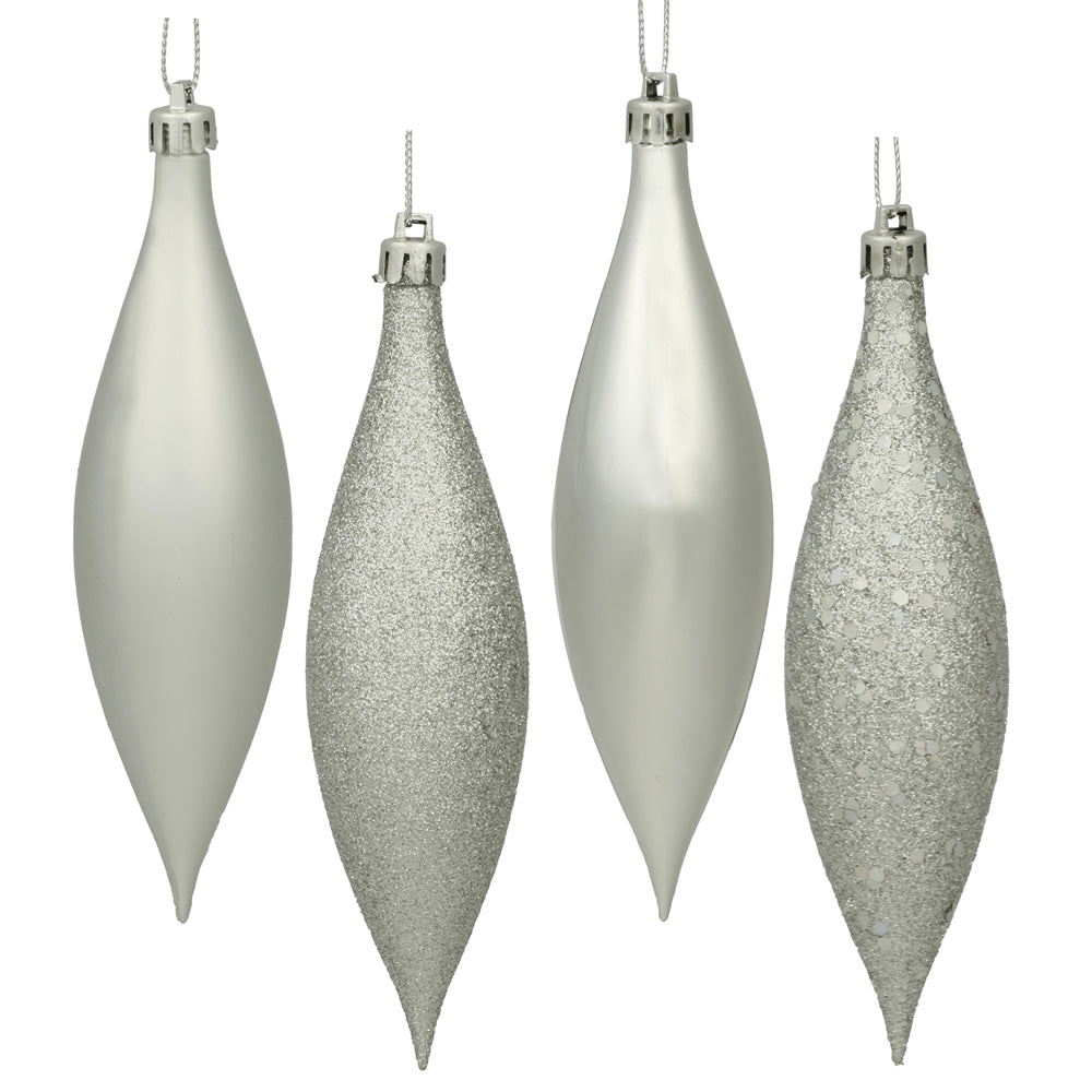 5.5" Silver Four-Finish Finial Drop Christmas Ornament – Set of 8