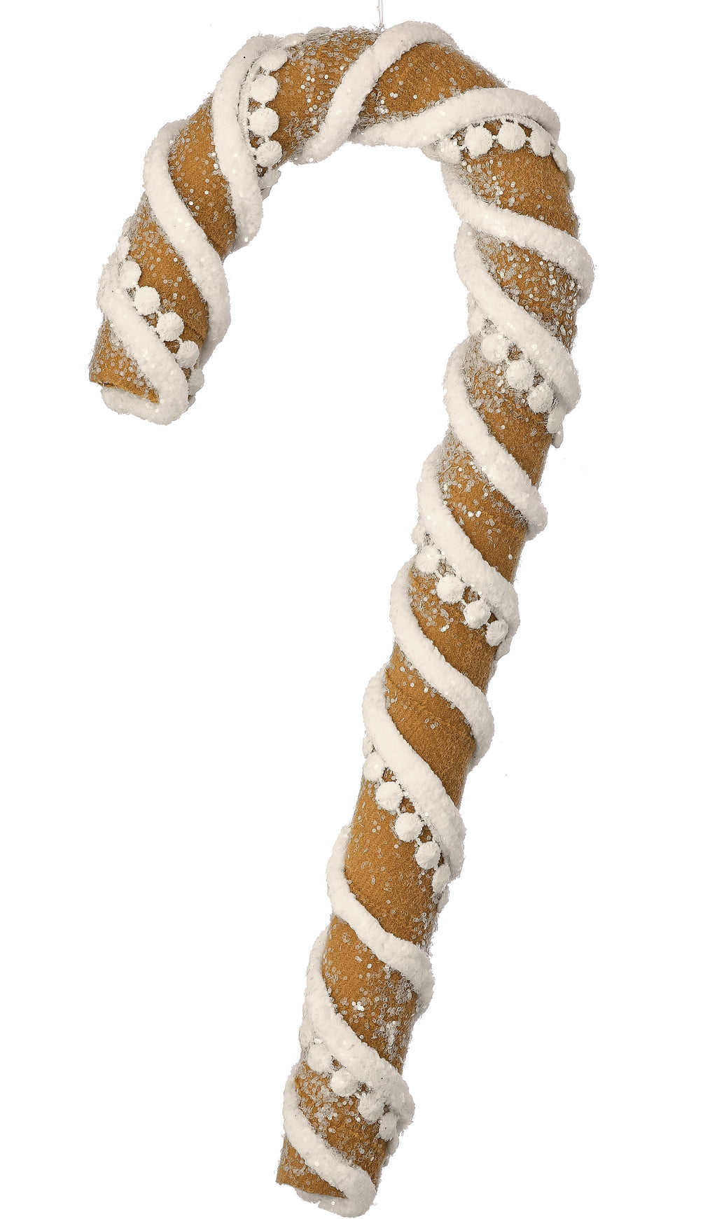 Sweeten your holiday décor with this delightful 12" Gingerbread Candy Cane Ornament. Designed to look like a frosted gingerbread treat, it features sugared detailing and white icing accents that bring a festive, bakery-fresh charm to your tree.