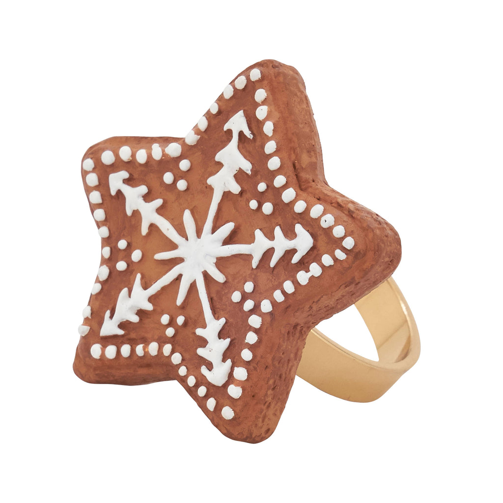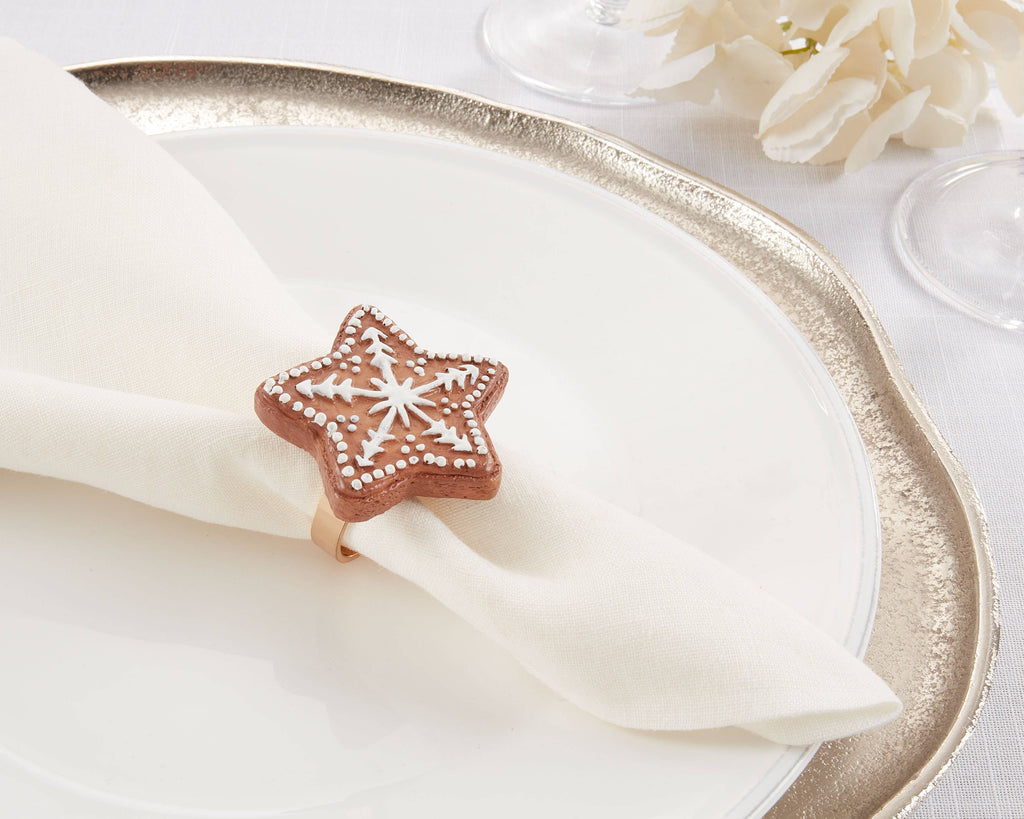 Add a touch of whimsy to your holiday tabletop with this cheerful 2" Gingerbread Star Napkin Rings. The shape and design bring the holiday spirit right to your table, delivering the perfect finishing touch to each and every place setting. These napkin rings are ideal if you're looking to set your table apart.