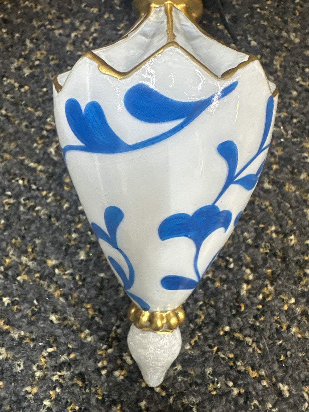 Add timeless elegance to your Christmas tree with these stunning Chinoiserie-Inspired Ornaments. Featuring a classic blue and white floral design with delicate gold accents, these ornaments capture the essence of refined holiday decor. The unique, tapered shape adds visual interest and a touch of luxury to your tree, wreath, or garland, making them perfect for creating a sophisticated, curated look.