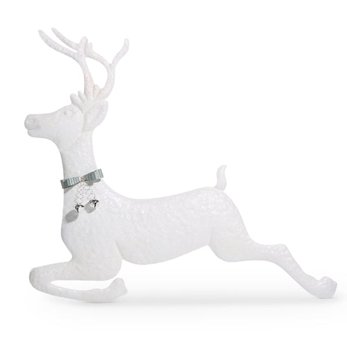 Add a serene, sculptural statement to your seasonal décor with our 34" White Metal Deer Wall Art. Designed in a dynamic leaping pose and finished in a frosty white shimmer, this elegant deer features delicate antlers and a silver jingle bell collar for a subtle festive touch.