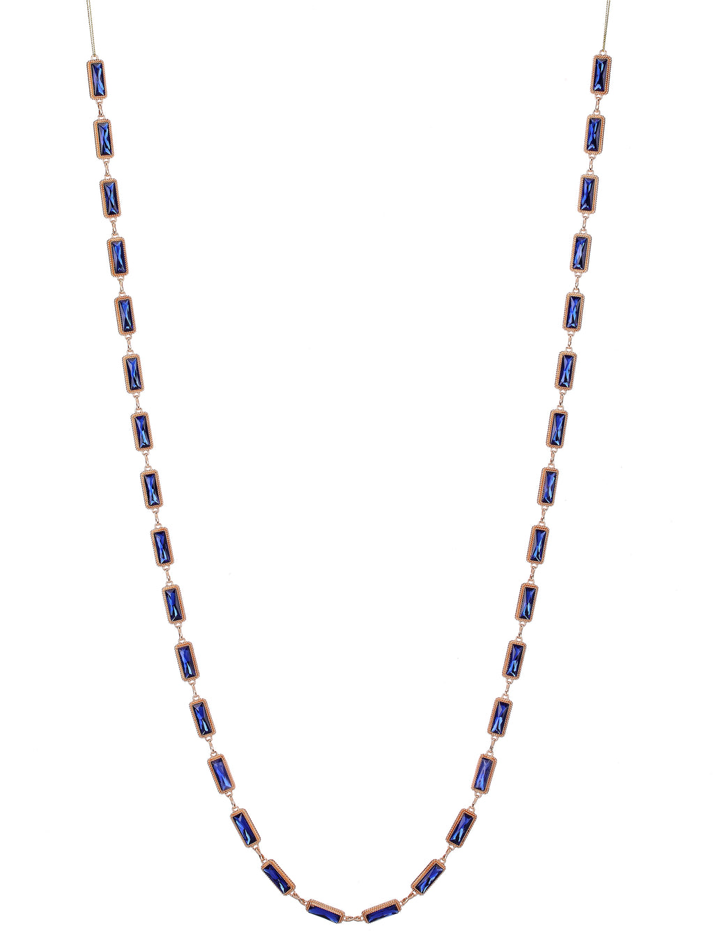 • Deep blue faceted rectangular jewels in champagne frames