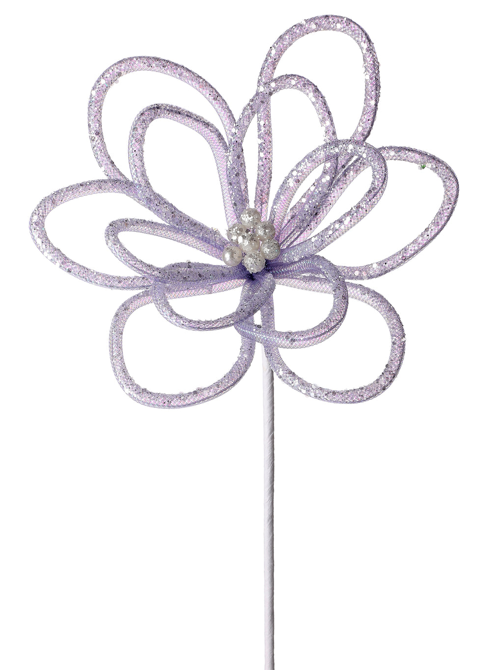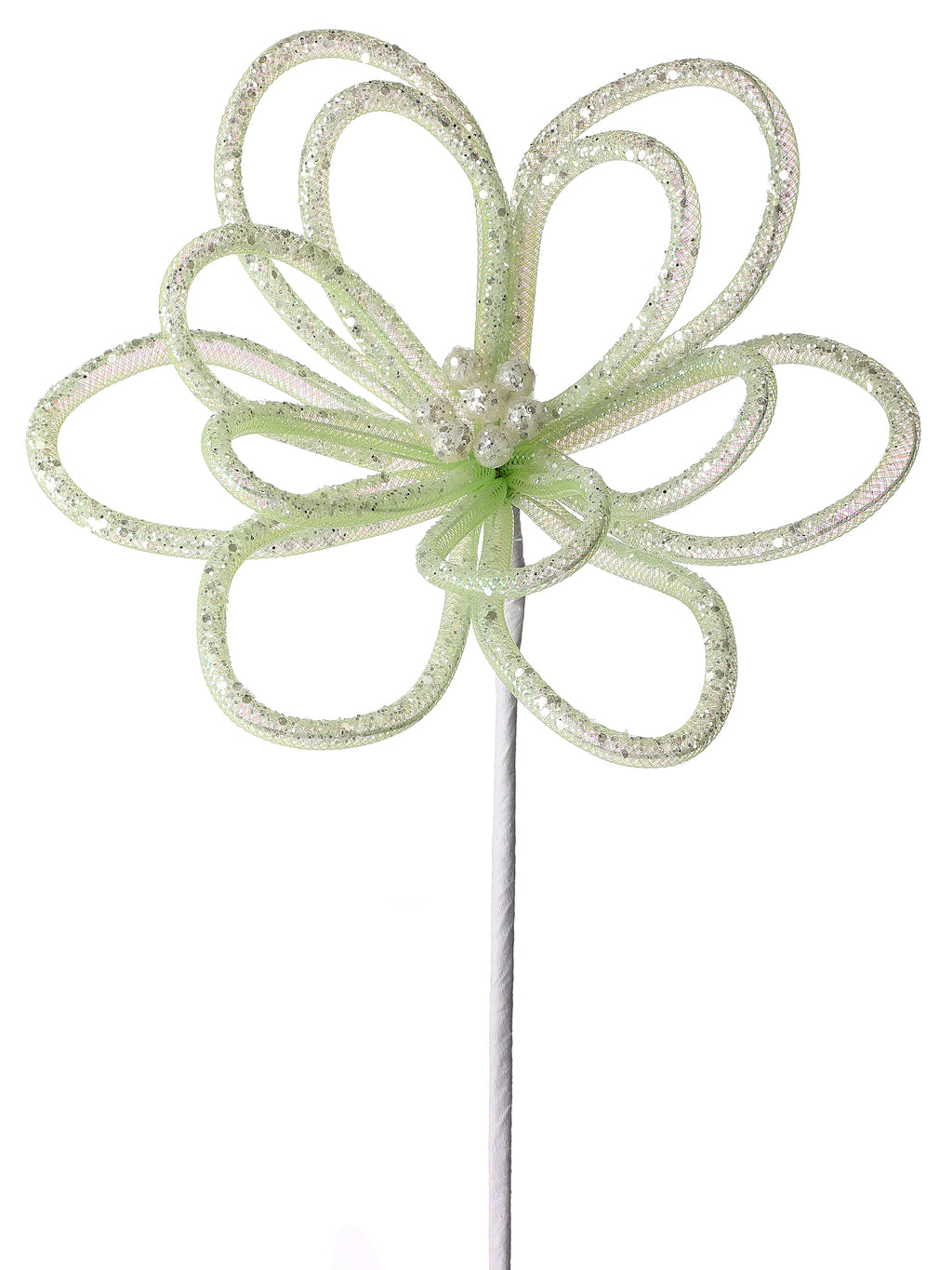 Add a playful pop of shimmer and whimsy to your seasonal arrangements with our 22" Glitter Sugar Petal Loop Flower. Available in two enchanting shades—Lavender or Mint Green—each bloom features airy mesh loops outlined in iridescent glitter and finished with a sparkling pearl-cluster center for a touch of frosted fantasy.