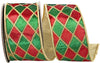 2.5"|4" x 5YDS Green & Red Diamond Velvet Metallic Dupioni Backed Ribbon