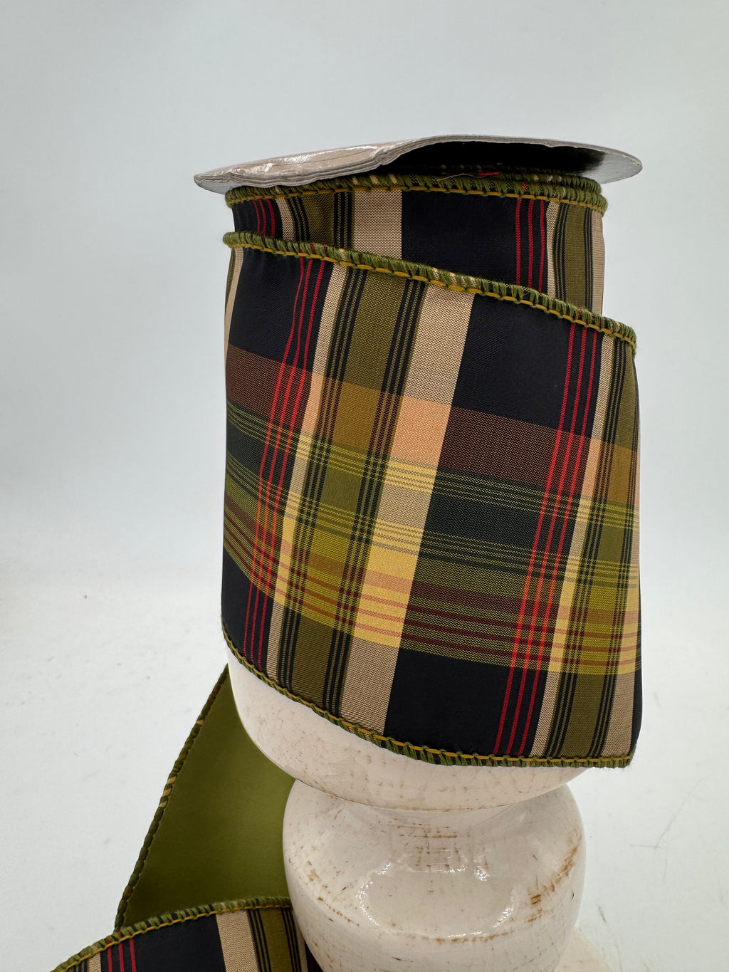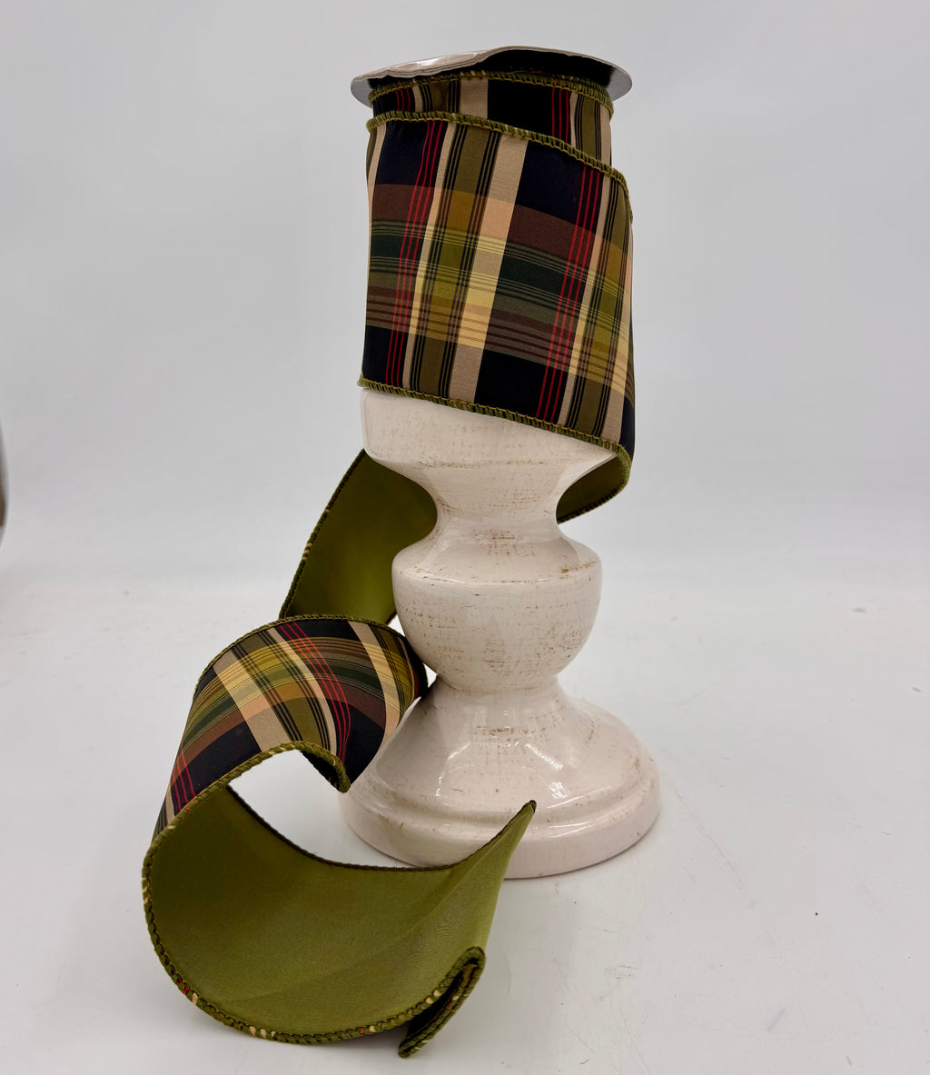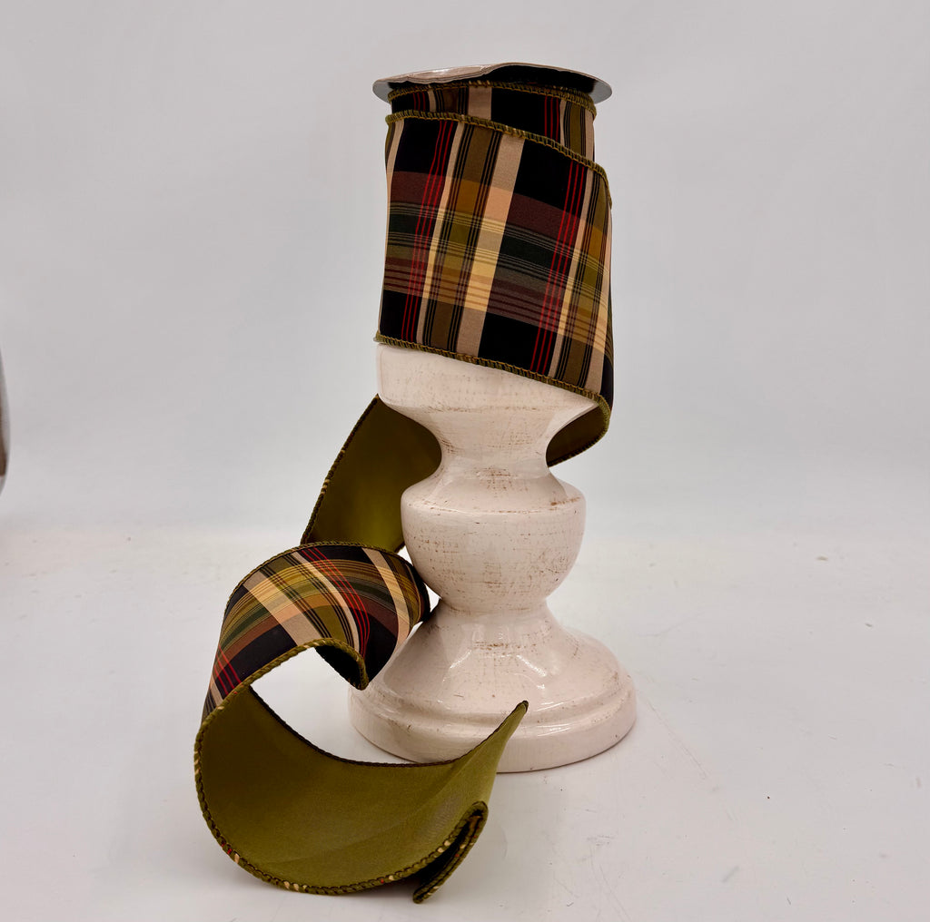 Bring a refined rustic charm to your seasonal decor with our 4"x10YDS Loden Plaid Taffeta Ribbon. This designer ribbon features a classic plaid pattern in rich tones of red, loden green, black, brown, and cream—perfectly balanced to evoke warmth and timeless sophistication. The wired edges ensure effortless shaping for bows and draping, making it an ideal choice for wreaths, garlands, centerpieces, and elevated gift wrapping. Crafted from crisp, high-quality taffeta, this ribbon offers both structure and style, seamlessly blending traditional elegance with modern appeal.