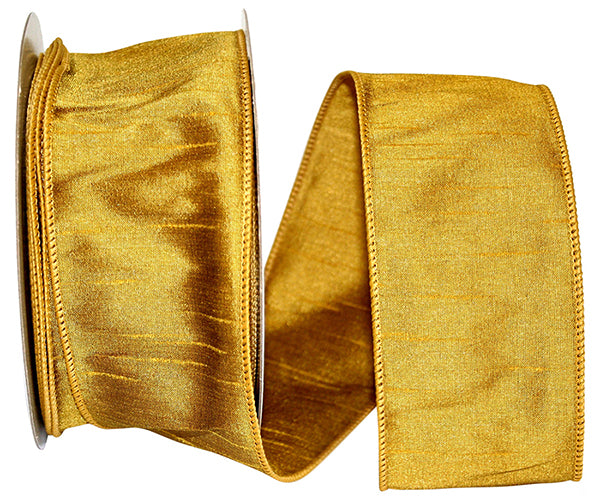 Elevate your seasonal and everyday designs with the luxurious texture of our Dupioni Supreme Wired Edge Ribbon in antique gold. Offered in 2.5" width and available in 20 yard rolls, this high-end ribbon features a subtly textured, silk-like finish and wired edges for effortless shaping. Perfect for holiday bows, wreaths, gift wrapping, floral designs, and upscale event decor.