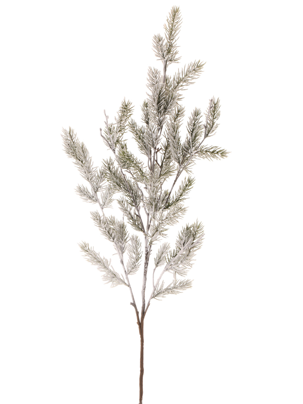 Capture the serene beauty of a snow-kissed forest with the 43" Northwoods Winter Pine Spray. This elegant stem features wispy, lifelike pine branches lightly frosted for a natural, wintry effect. The soft dusting of white gives the illusion of freshly fallen snow, adding a quiet sophistication to seasonal arrangements.