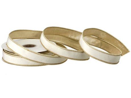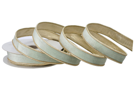 1" x 10 Yards Velvet Pastel Ribbon with Gold Edge | Blue, Pink, Ivory, Mint Green, Lavender