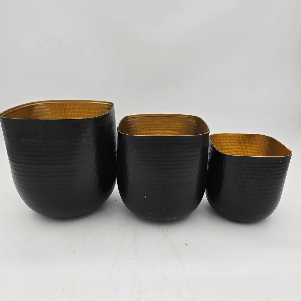 7" Antique Black Metal Rounded/ Square Planter