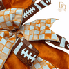 Featuring vibrant orange velvet, crisp checkerboard print, and playful football stitching, this bow is the perfect accent for wreaths, lanterns, door hangers, or tailgate decor. Its wired ribbon construction allows for easy shaping and long-lasting style all season long.