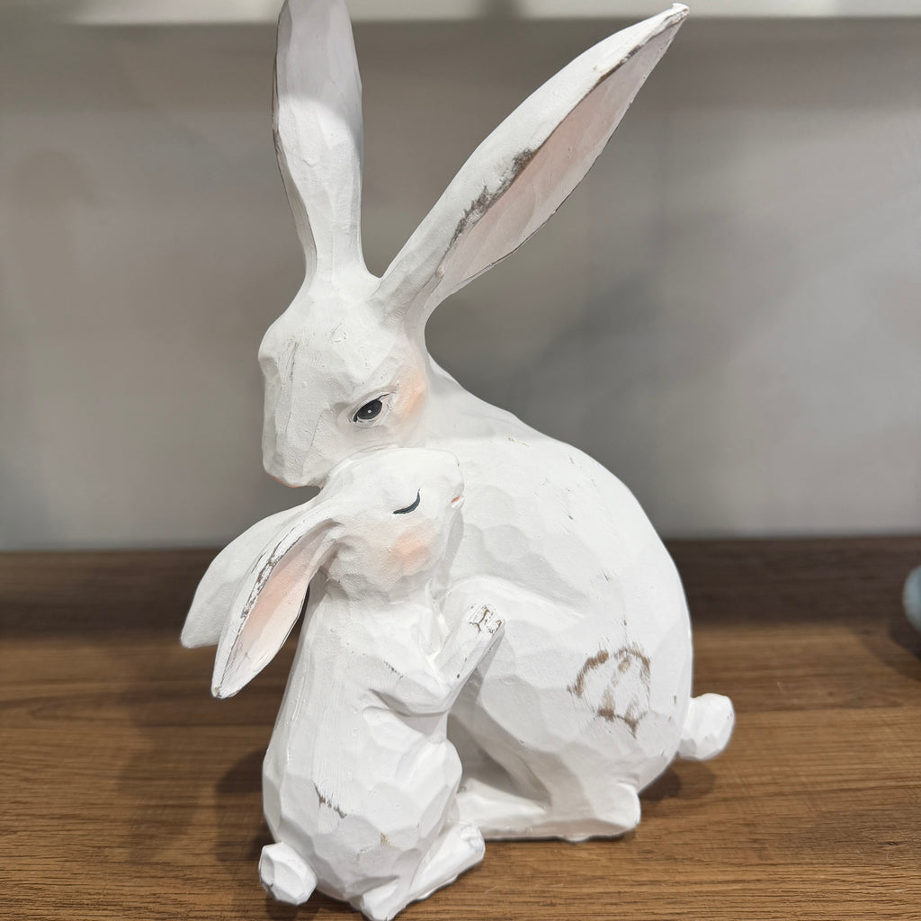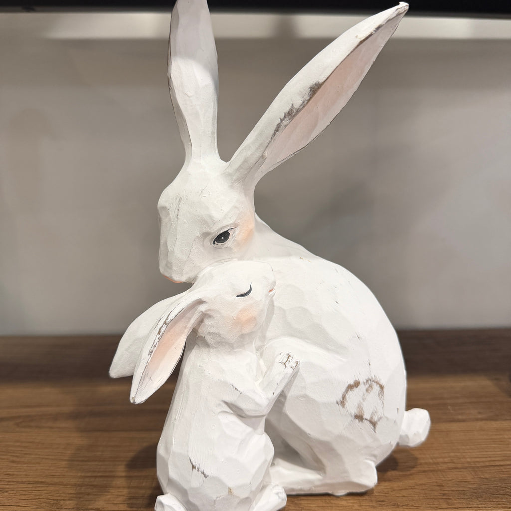 Indulge in the elegance of our 10.5" Rabbit & Baby Cuddling tabletop decor. This exquisite white piece exudes a sense of sweetness, making it the perfect addition to your Easter decorations. The cuddling rabbits evoke feelings of tenderness and warmth, creating a charming atmosphere in your space. A must-have for any sophisticated collector.
