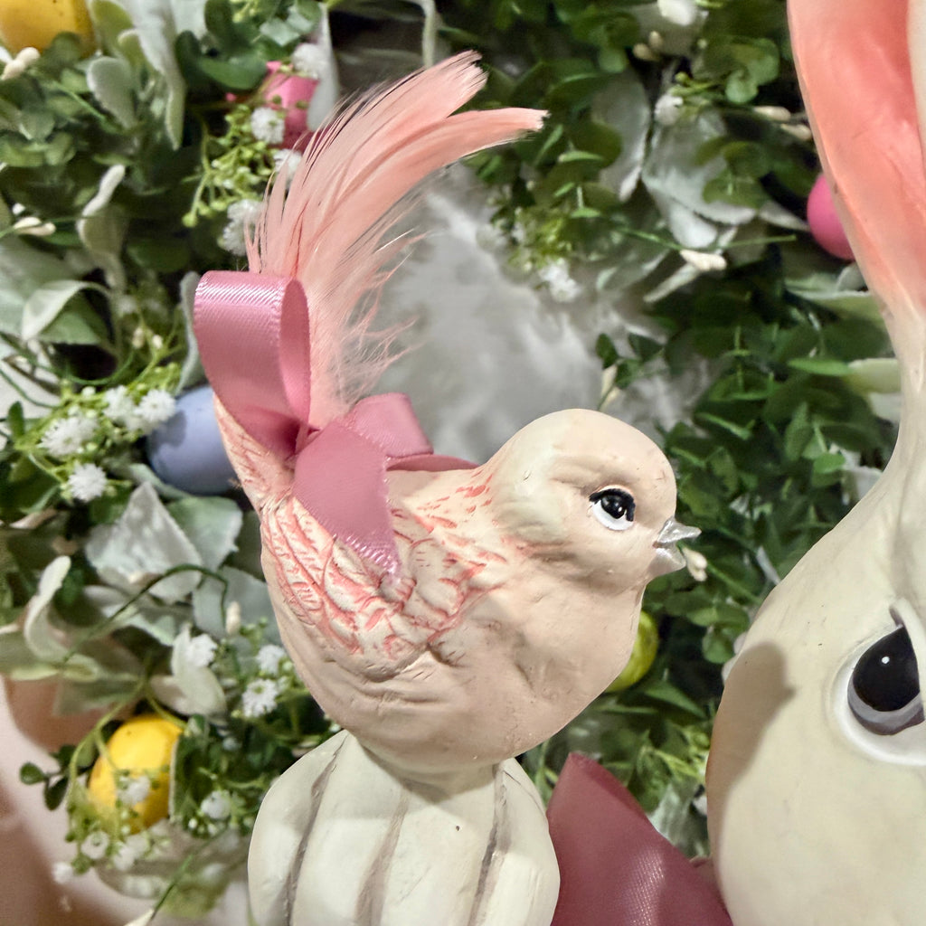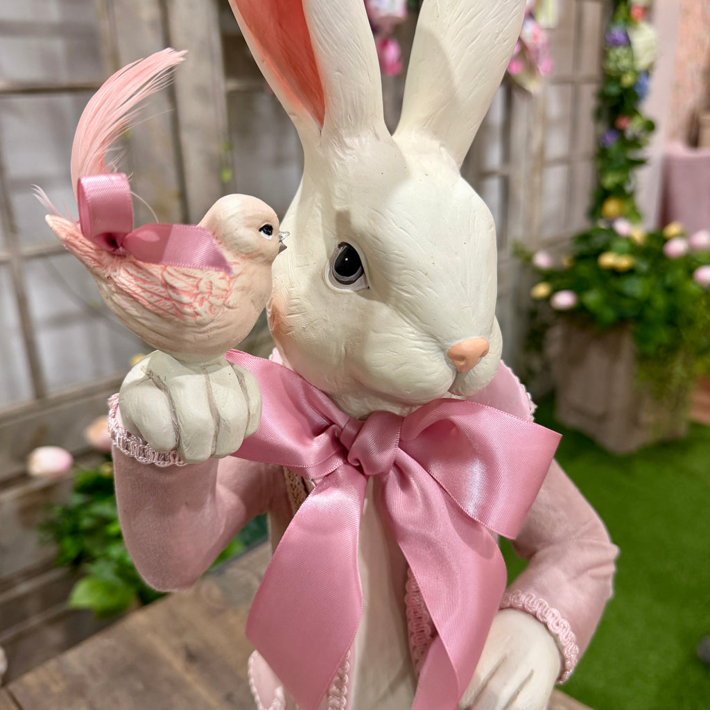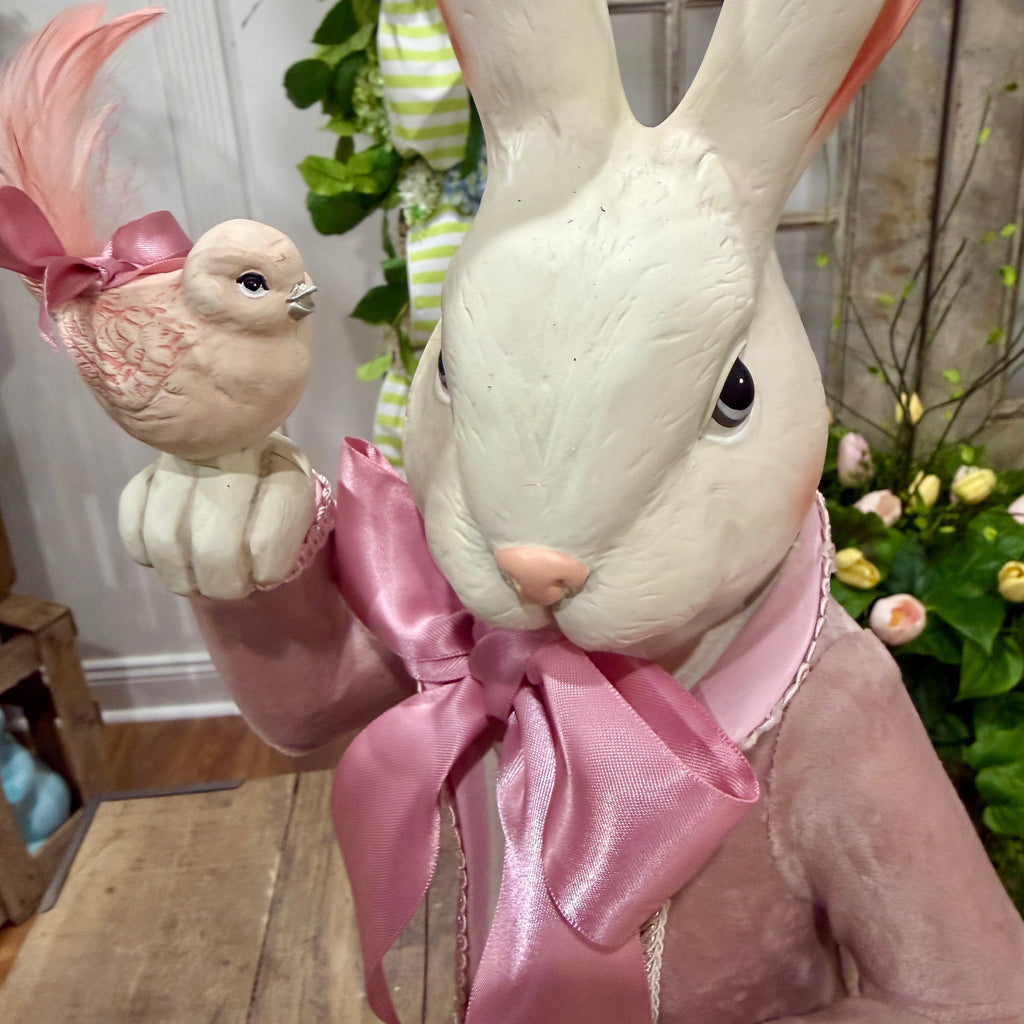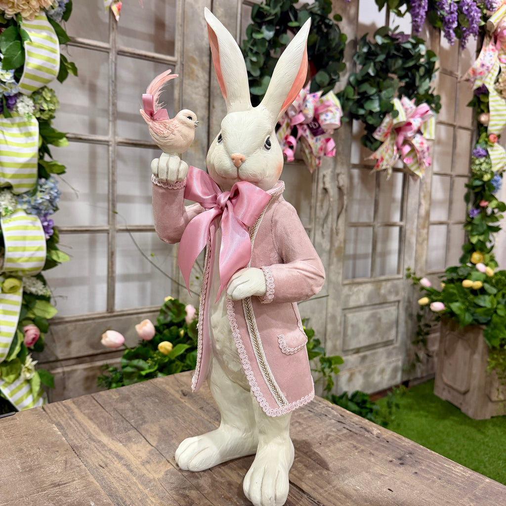 Embrace the whimsical elegance of spring with our 21" Resin French Bunny. Adorned with a charming coat and accompanied by a sweet bird, this free-standing masterpiece will add a touch of enchantment to any tabletop. A must-have for Easter and beyond.