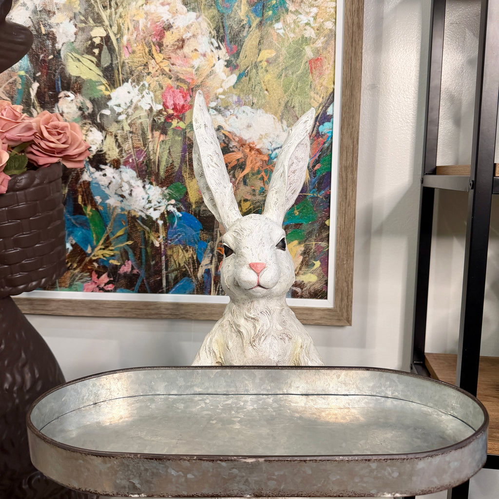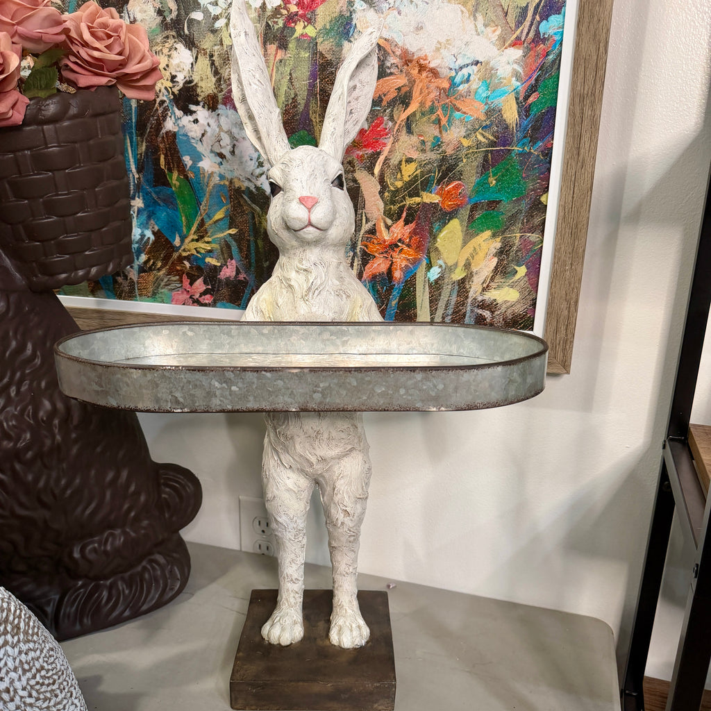 Indulge in luxury with our 28" White Rabbit with Tray. This elegant and exclusive piece will enhance any space with its sophisticated and tasteful design. Let this white rabbit with tray bring an artistic touch to your home, making a statement that speaks of opulence and refinement.