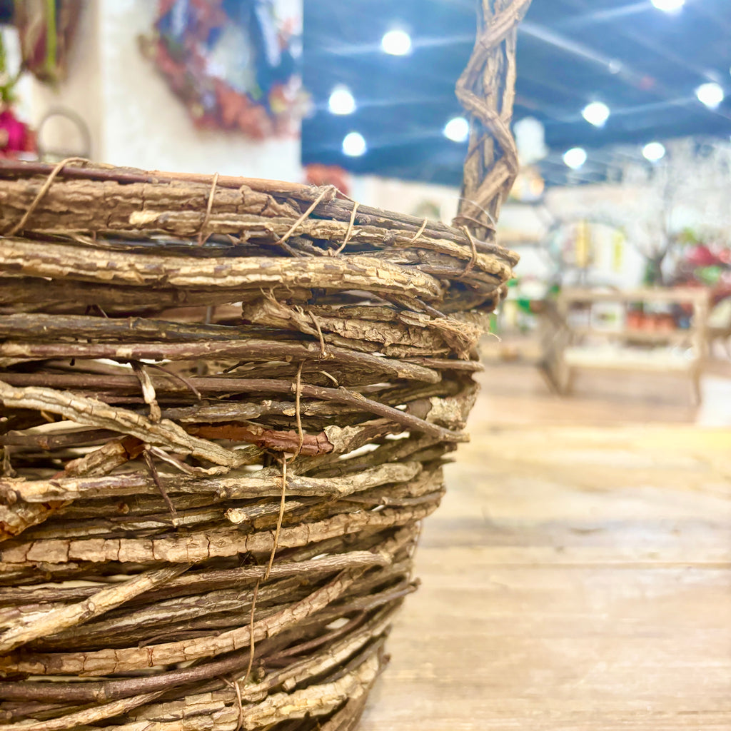 Add rustic charm to your seasonal displays with our handcrafted Grapevine Wall Basket. Perfect for front doors, mantels, or wall décor, each basket features natural grapevine for a timeless, organic look. Available in two sizes—18" and 24"—each sold separately. Fill with florals, greenery, or holiday accents for a versatile base that transitions beautifully through the seasons.
