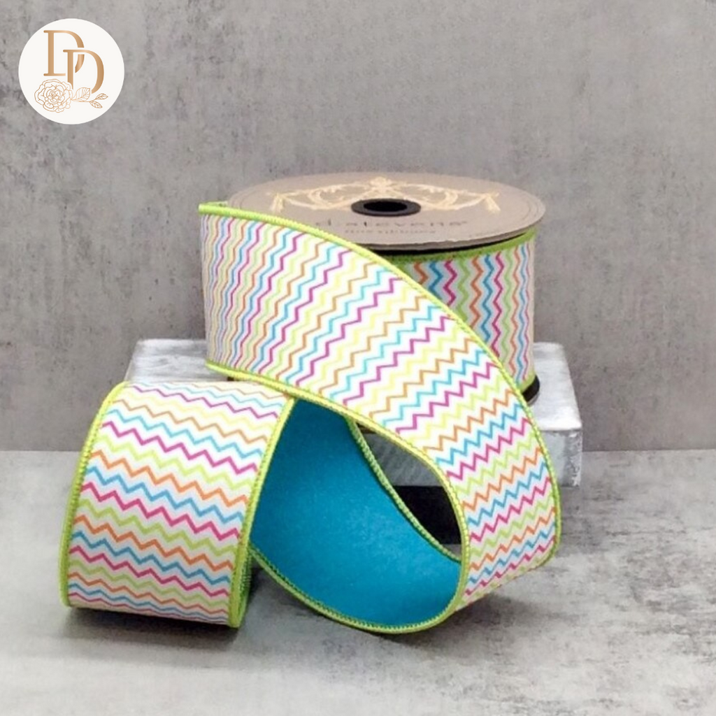 Add a touch of sophistication to your crafts with our 2.5" Pink, Orange, Teal, and Lime Chevron Pattern Dupioni Ribbon. This high-quality ribbon is perfect for adding a pop of color and texture to any project. Get 10 yards of luxury and exclusivity in one product.