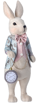 Capture the essence of spring with these elegant 20" bunny figurines. Dressed in their finest attire, these adorable bunnies exude class and sophistication. Perfect for decorating your Easter celebrations or adding a touch of luxury to your home décor. Don't miss out on this charming piece of art. Boy bunny and girl bunny sold separately.