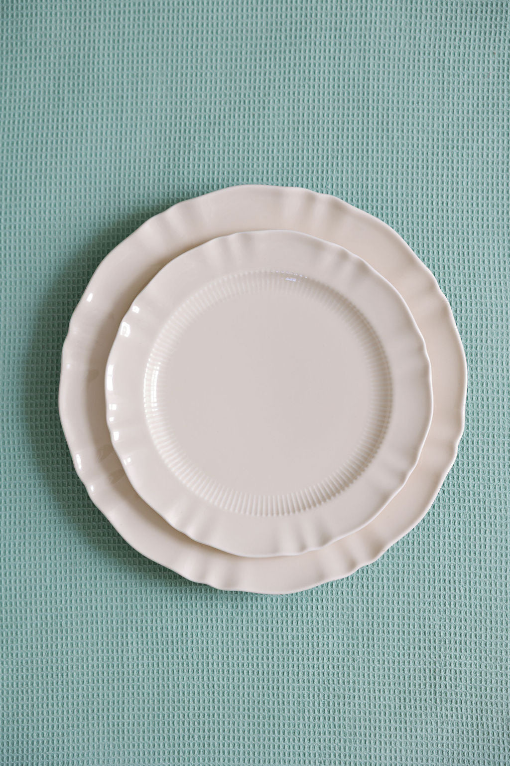 This charming two-piece collection features delicately crafted plates with graceful scalloped edges that add a touch of vintage-inspired elegance to any table setting.