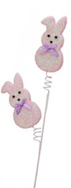 Dimensions: 27 inches tall. Features: Glittered bunny designs, pastel colors, satin bow accents, and a durable wired stem for flexible use.