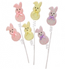 Add a pop of sparkle and charm to your Easter arrangements with this 27" Sugared Bunny Peep Spray. Featuring glittery bunny shapes in pastel hues of pink, yellow, and purple, each adorned with a coordinating satin bow, this spray is perfect for bringing festive whimsy to wreaths, centerpieces, or floral arrangements. The sturdy wired stem ensures easy placement and styling, making it a versatile addition to your spring decor.