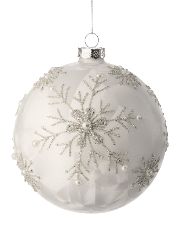 6"/8" White/Silver Iced Sequin & Pearl Snowflake