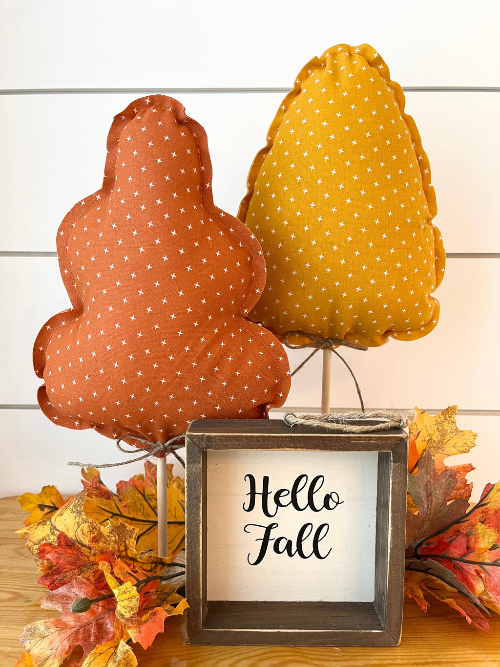Our festive trees are the perfect addition to any fall, harvest and pumpkin decor. With rustic fabric edges perfect to match with primitive and farmhouse decor.