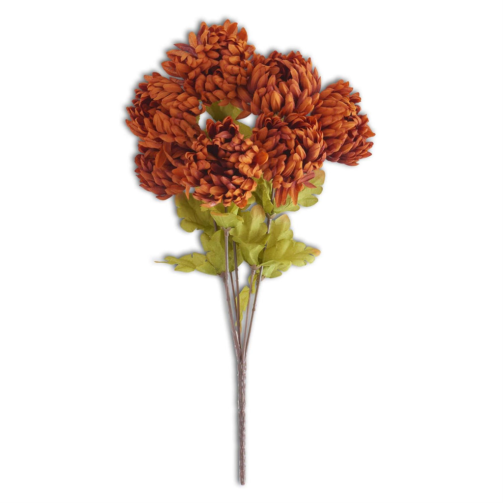 Brighten your seasonal arrangements with the lush beauty of this 21" Mum Bush, available in Cream or Rust (sold separately). Each bush includes 12 full stems topped with layered, lifelike mum blooms and leafy green foliage. The wired stems offer flexibility for easy styling in bouquets, centerpieces, or fall decor displays.