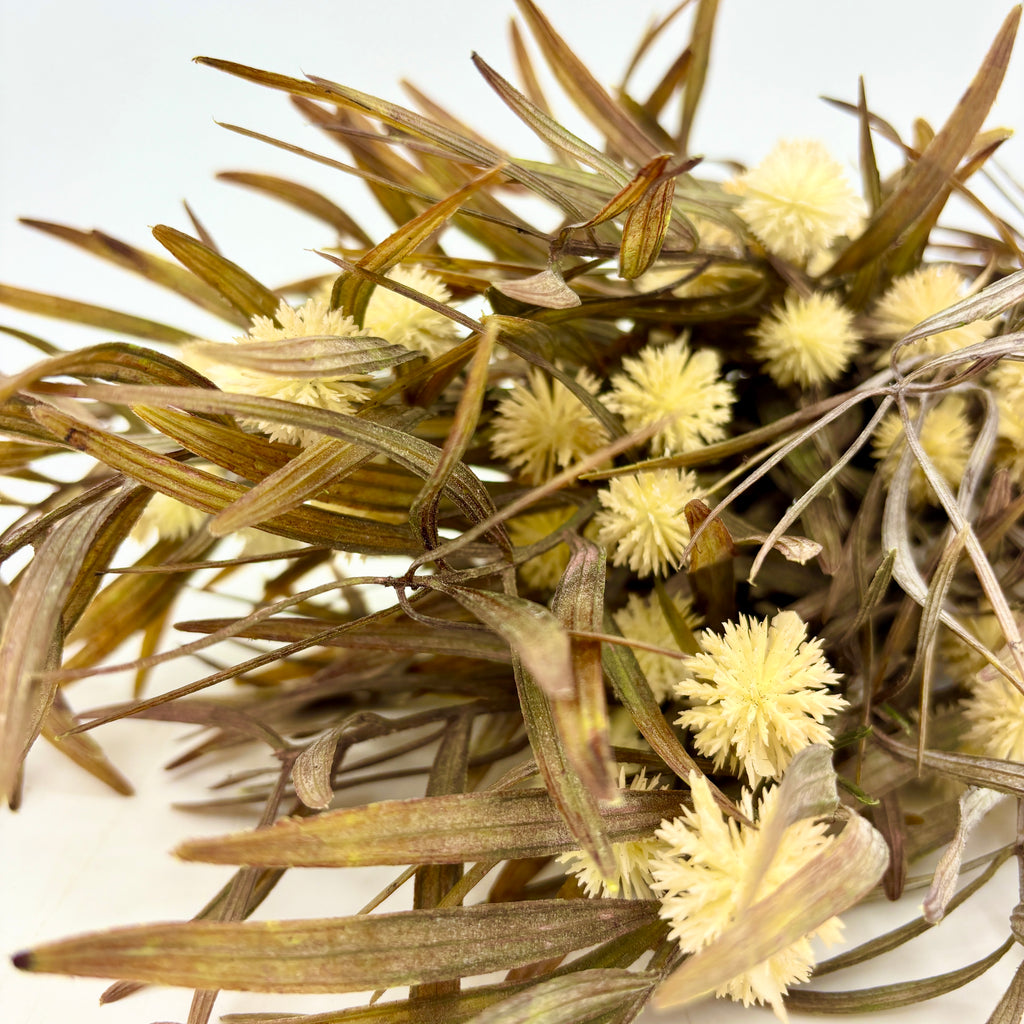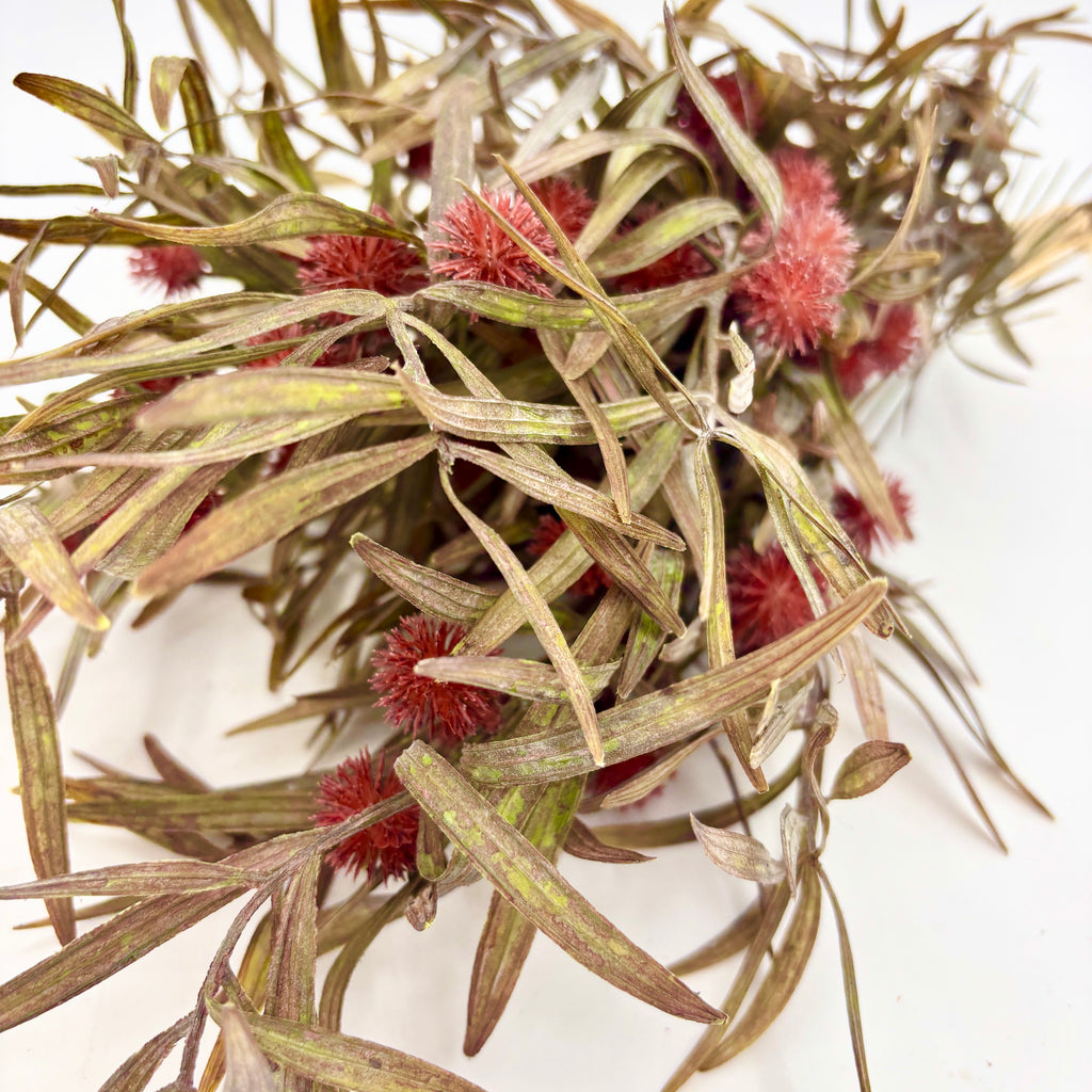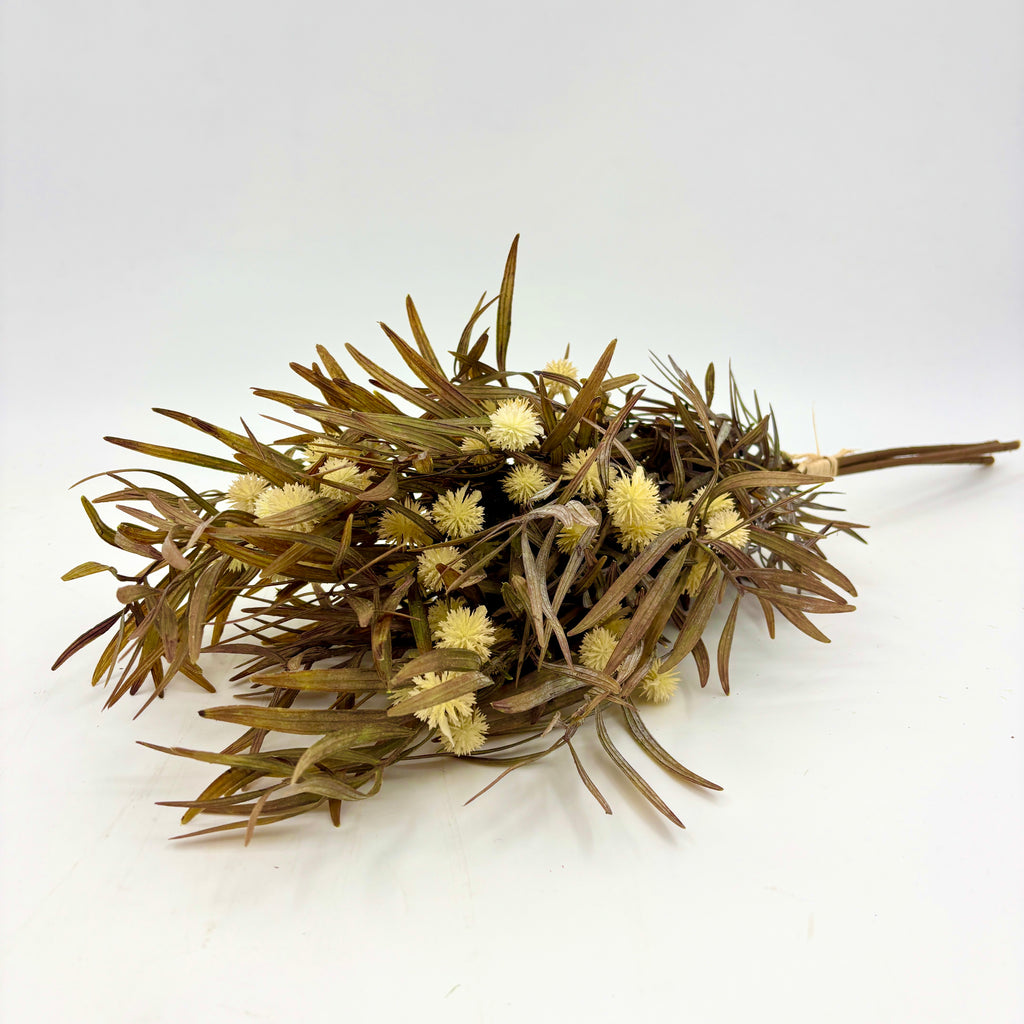 This tall mixed grass bush features slender, wispy foliage in soft, muted fall tones with delicate berry-like accents nestled throughout. The natural look and neutral palette create a versatile, organic feel perfect for seasonal arrangements, centerpieces, or vase styling. Each variation showcases a different accent color—burgundy berry, cream berry, or light brown berry—sold separately.