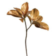 The 25" Gold Magnolia Leaf Pick brings a refined metallic glow to seasonal arrangements and decorative displays. Each leaf is crafted with a naturalistic silhouette and finished in a radiant gold, capturing the light with a warm, luminous sheen. The branching structure and dimensional leaves evoke the stately presence of magnolia foliage while introducing a contemporary, luxurious twist.