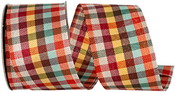 2.5"x10YDS Tonal Twill Plaid Wired Edge Ribbon | Brown, Red, Yellow, Teal