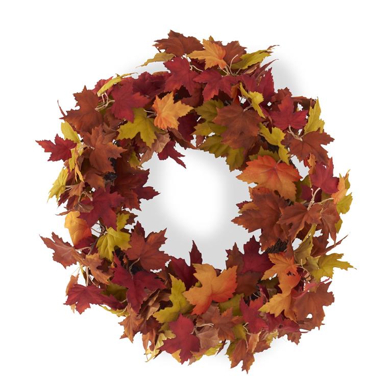 Welcome the season with this vibrant 20" Fall Maple Leaves Wreath, featuring a rich blend of orange, brown, and green foliage. Bursting with realistic maple leaves, this full and festive wreath brings autumn warmth to your front door, mantel, or wall decor.