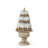 Bring a touch of elegance to your fall decor with this 15.25" Silver Resin 3 Stack Pumpkins in Urn. Featuring a metallic silver finish and ornate gold acanthus leaf detailing, this decorative piece is the perfect blend of harvest charm and sophisticated style. A beautiful accent for mantels, sideboards, or tabletops.