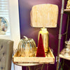A gold plated textural ceramic table lamp with gold base and black linen hardback shade.