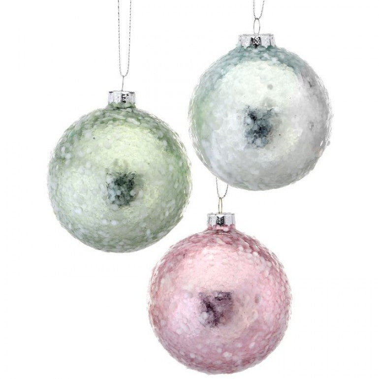 Indulge in luxury with our 3" Glass Sequin Pearlized Ball Ornaments, available in three elegant pastel shades: Green, Blue, and Pink. Each sold separately, these macaron-inspired ornaments add a touch of sophistication to any holiday decor. Elevate your festivities with the magic of these sparkling, hand-crafted ornaments.