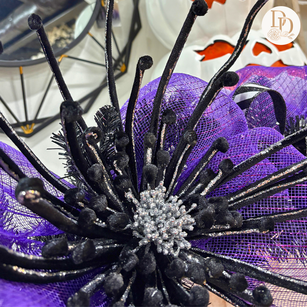 Complete your hauntingly chic Halloween décor with the Glamour Gets Wicked Garland, a 108-inch (9-foot) statement piece designed to drape, cascade, and enchant. This luxury Halloween garland on a black artificial pine base is overflowing with purple mesh, glittered accents, and rich seasonal textures.