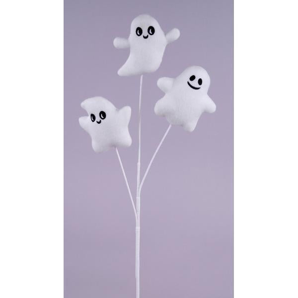 Whimsical meets chic in our 20" Velvet Ghost Spray, the perfect playful touch for your Halloween décor. Featuring three charming white velvet ghosts with expressive black eyes and smiles, this spirited stem adds a fun, festive flair to floral arrangements, wreaths, or standalone displays. The soft texture and crisp black-and-white contrast make it a standout piece that blends seamlessly into both spooky and sophisticated seasonal settings.