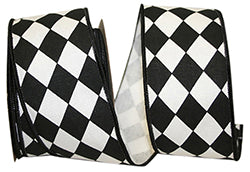 This 2.5-inch wide, 10-yard long ribbon features a bold black and white harlequin pattern in a classic diamond layout. The high-contrast design makes it an eye-catching choice for a variety of decorative projects, from seasonal displays to themed events. Made from a sturdy fabric, the ribbon holds its shape well and is ideal for crafting bows, trimming wreaths, or adding flair to centerpieces and gift packages.