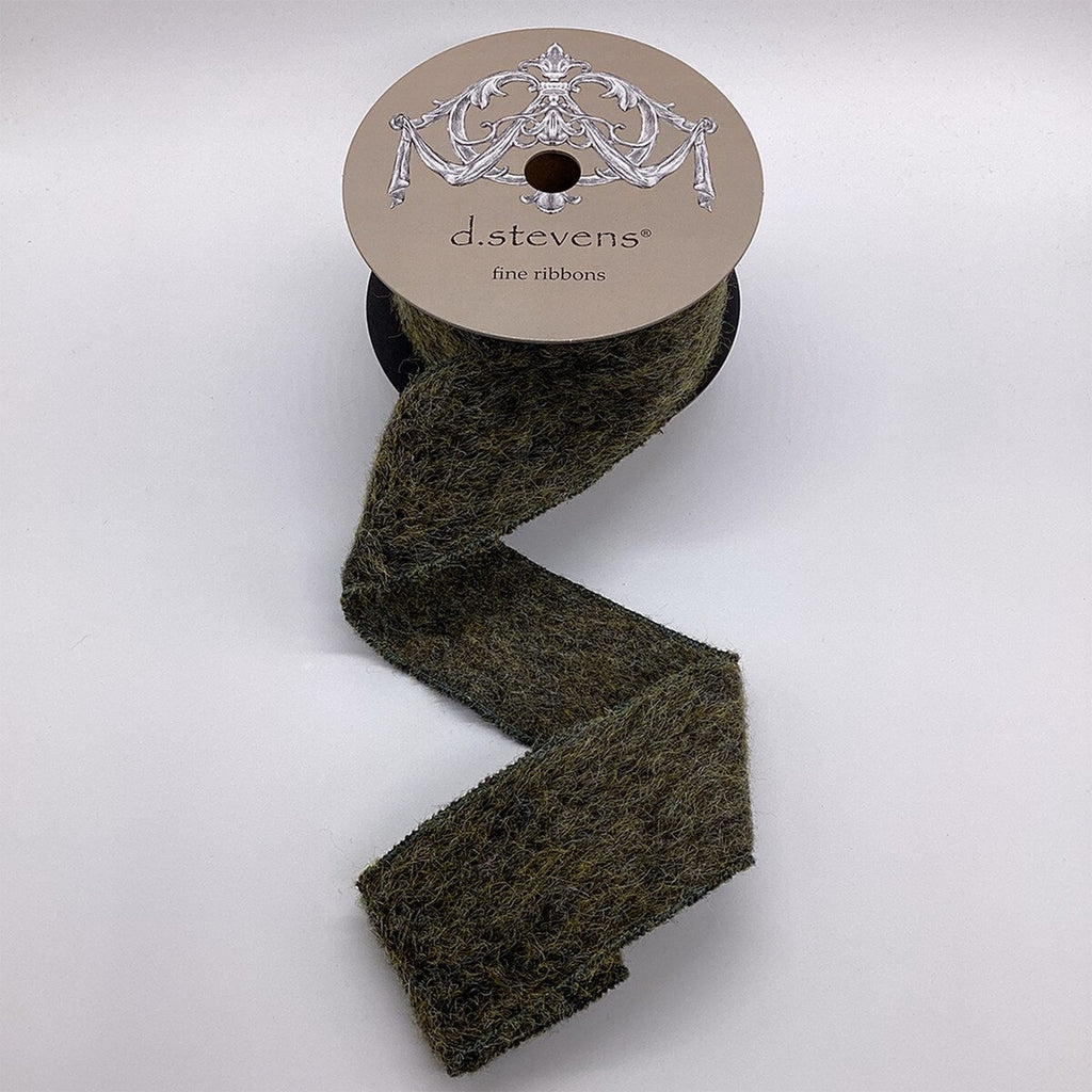 This 2.5-inch ribbon brings cozy texture and rustic charm with its faux fuzzy wool finish in a rich mustard-black blend. The tactile look of heathered wool makes it perfect for autumn wreaths, woodland themes, and farmhouse accents.