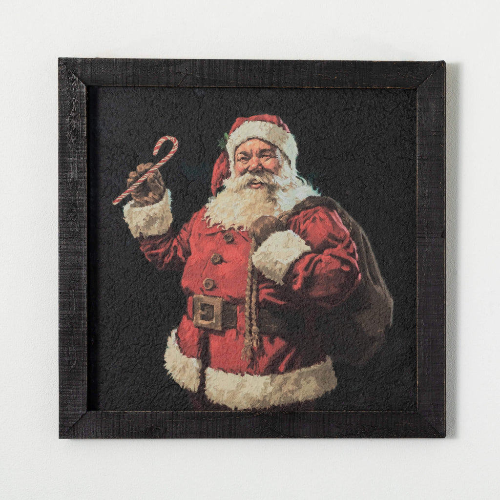 Bring warmth and holiday cheer into your home with this jolly Santa wall décor by artist Darren Gygi. Dressed in his classic red suit with a gleaming belt, rosy cheeks, and a twinkle in his eye, this artwork perfectly captures the retro charm of Christmases past.