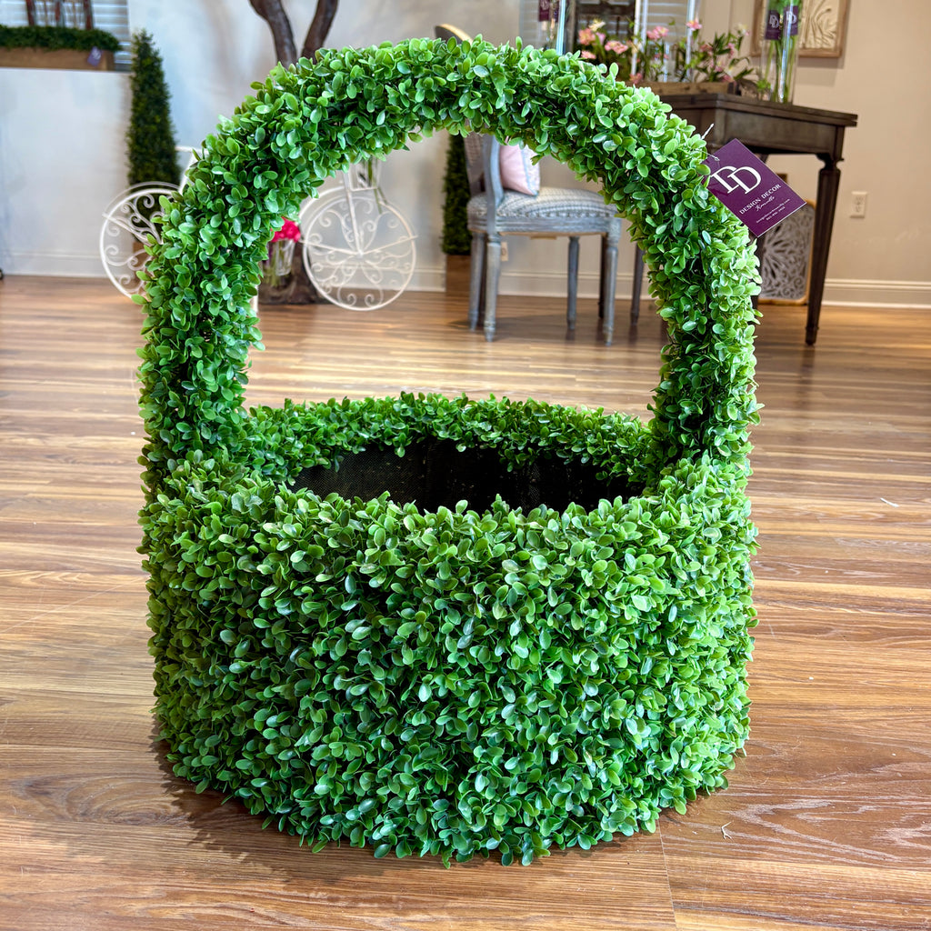 Classic, charming, and beautifully versatile—this boxwood basket (24") is crafted with lush, UV-treated faux greenery for long-lasting beauty indoors or out. Sculpted in a traditional Easter basket silhouette with a full handle, each piece adds a fresh garden touch with zero maintenance.