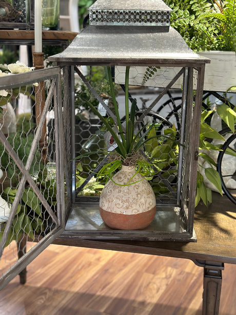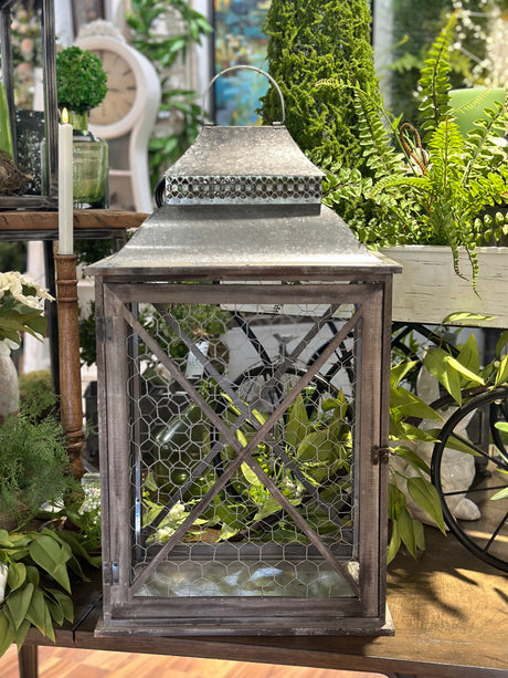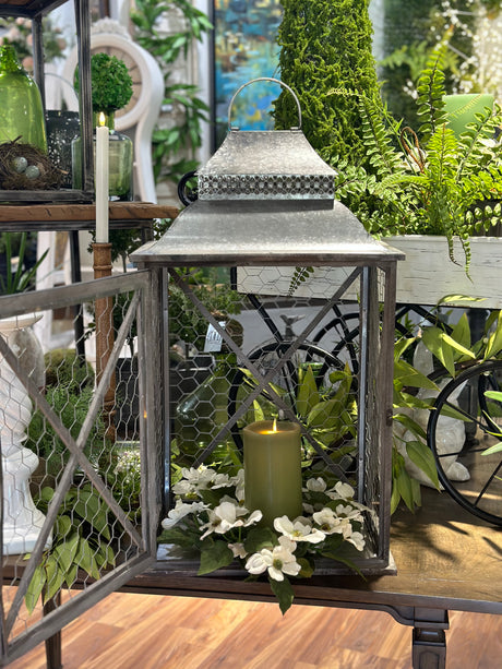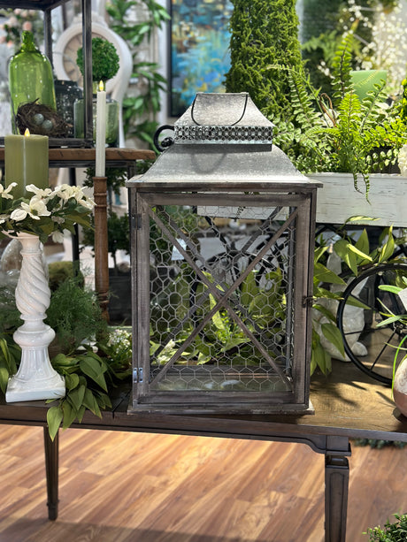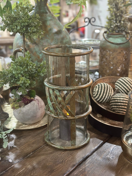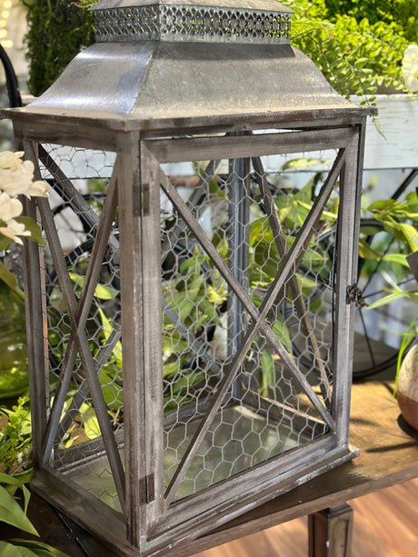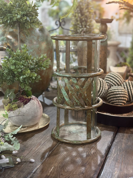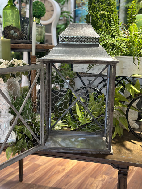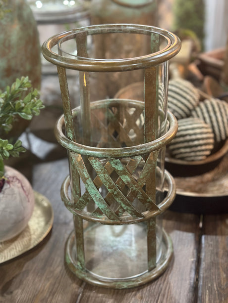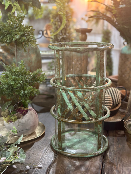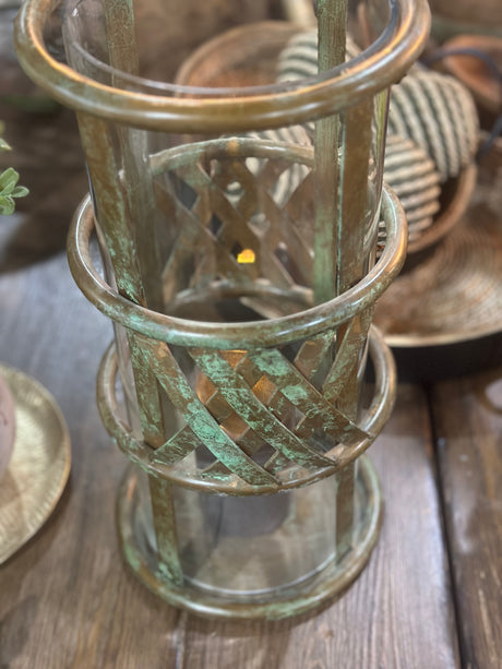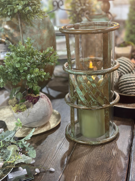 Vintage Sage Green Metal Lantern | 12" x 22"