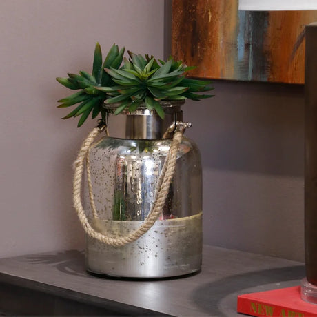 Regular price $233.85Unit price12" Silver Antique | Half Etched Glass Lantern Jar with Chrome Metal Band