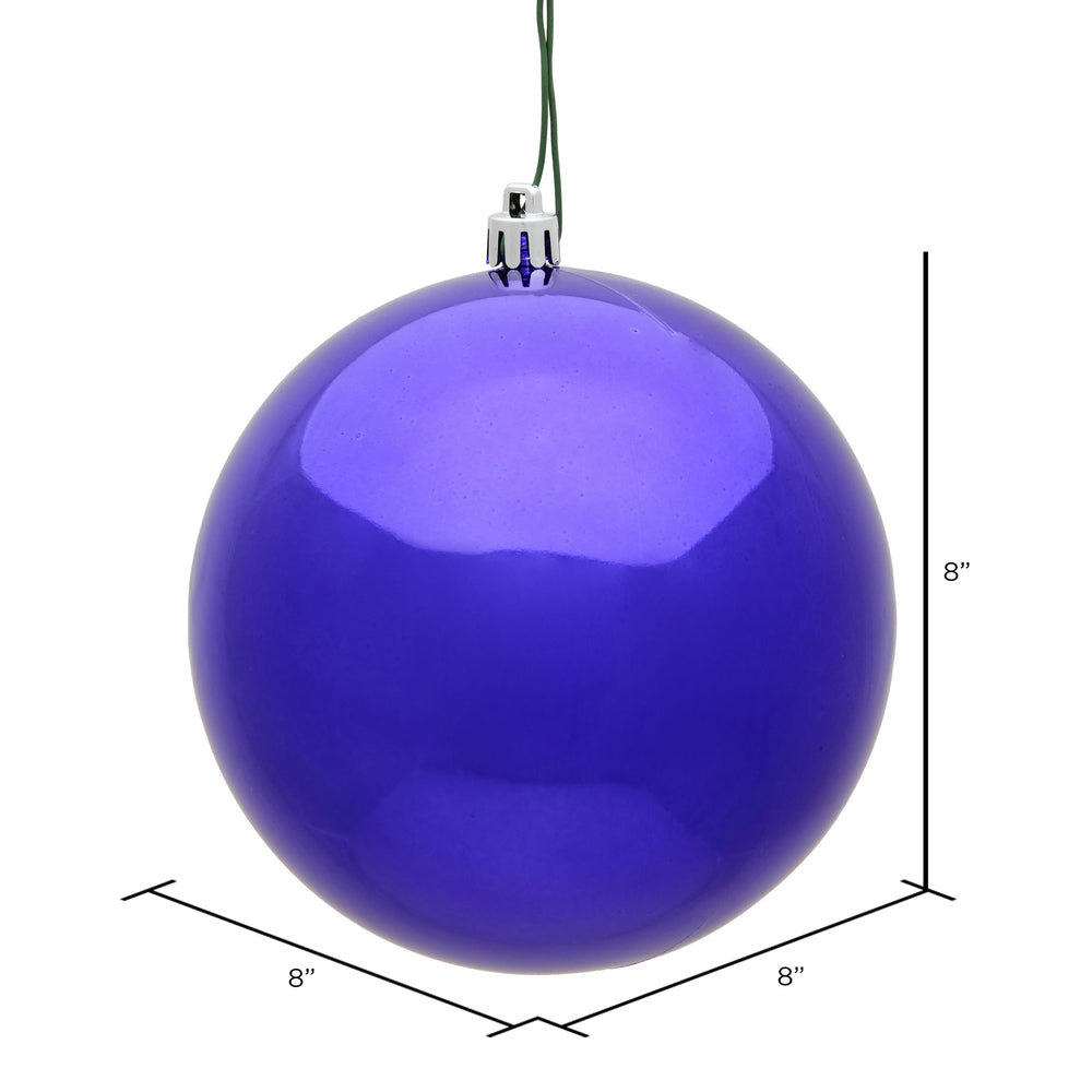 Add bold elegance to your décor with this 8" Purple Shiny Ball Ornament, perfect for oversized trees, large-scale displays, or festive outdoor setups. With a brilliant candy-like shine and durable finish, it's made to last—indoors or out.